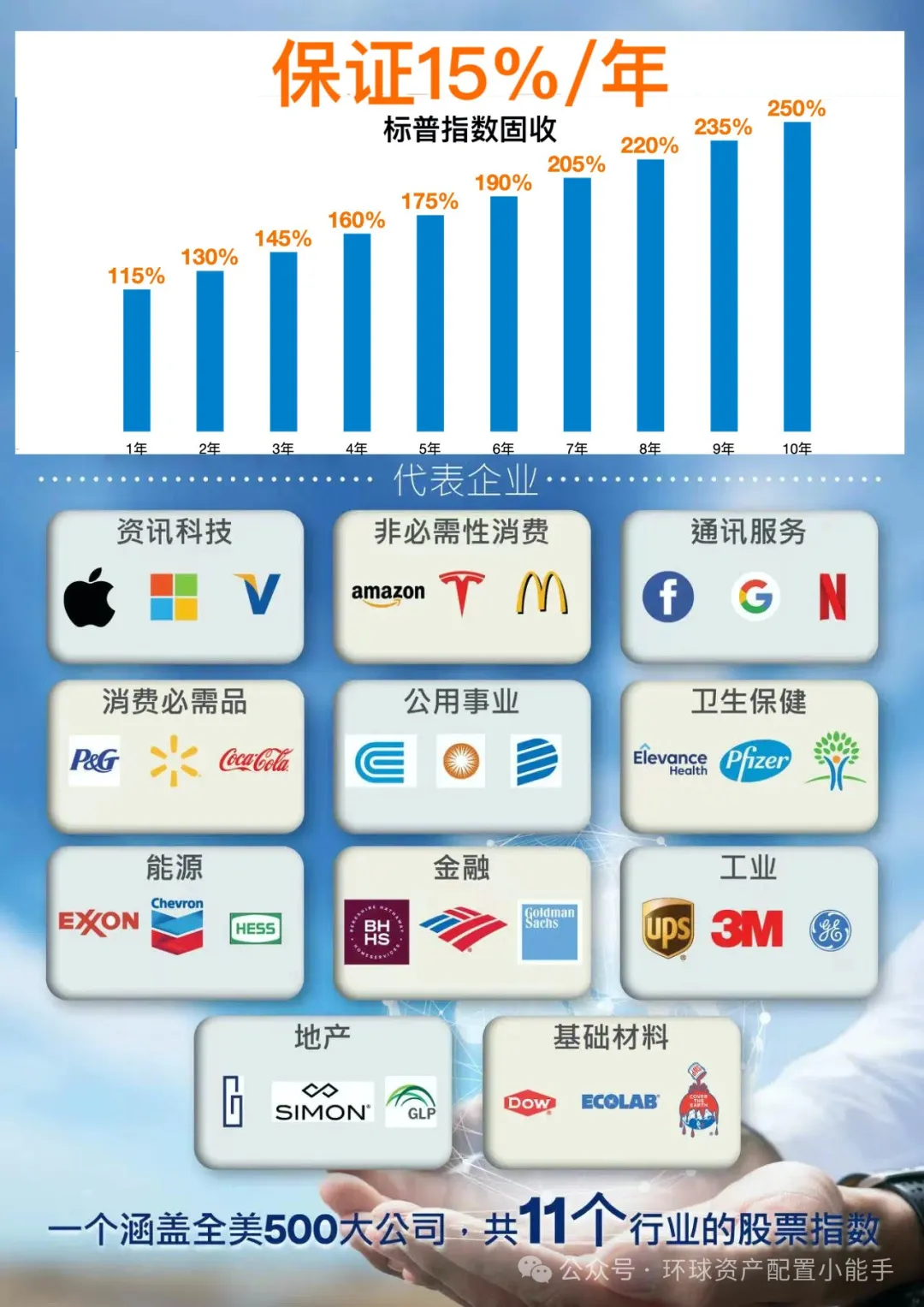 这个回报率是不是最好的?不一定,起码赢过80%以上的人。比您接触的那些杂七杂八理财好吧?除去收费,有多少收益?例三、稳健固收类,派息基金,每年保证派息12-15%/年。投资标的:美国国债与指数基金,底层资产更安全,透明。资产每7年翻一倍。申赎零费用,管理费0.5%/年。银行经理只会代销/卖货,派息基金7%,收认购费1-3%不等。保险代理/经纪只会让你买投连险,平台扣费2-3%/年,短期退保,您还会损失。我们建议美国派息基金,申赎0费用,收益率提升至15%/年,随时申赎。对您是不是更好?