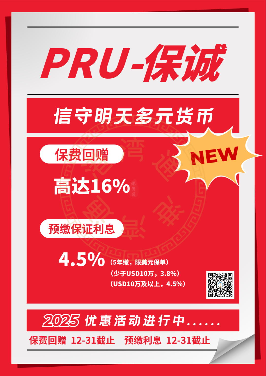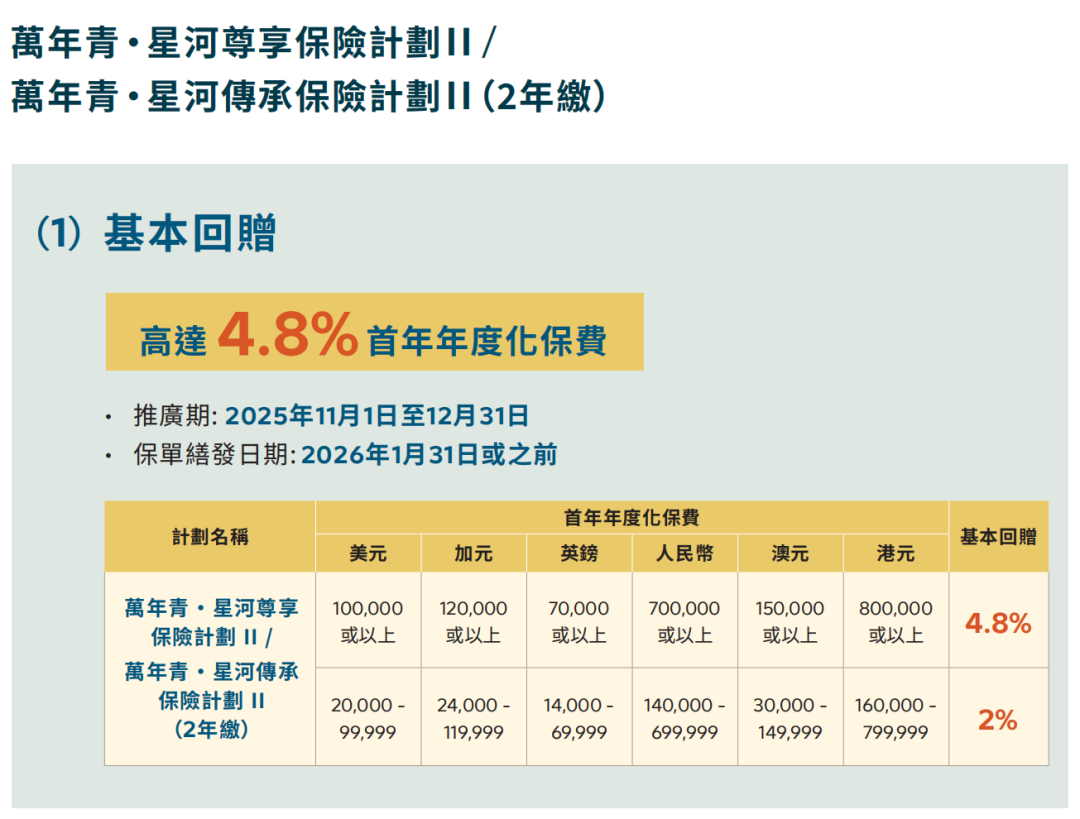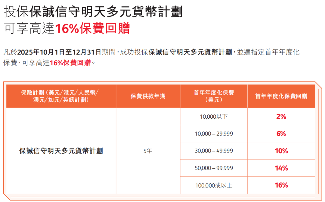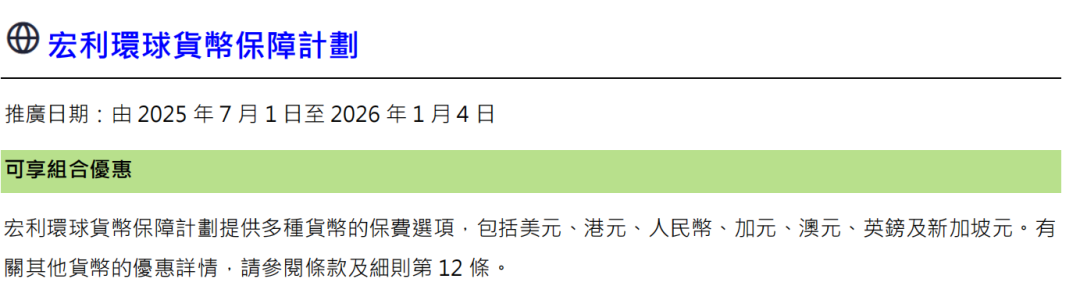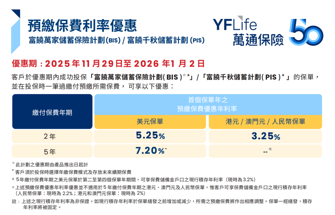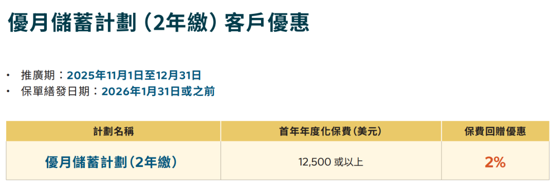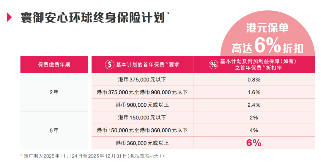 推广期:由2025年12月1日至12月31日(限5年缴美元保单)