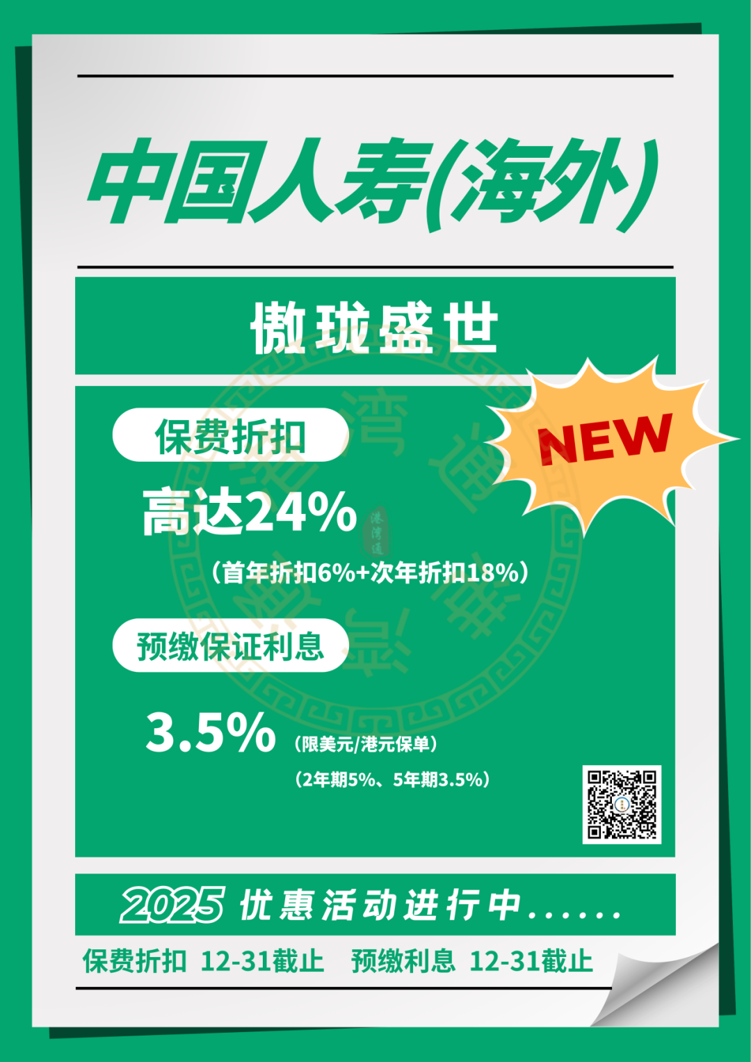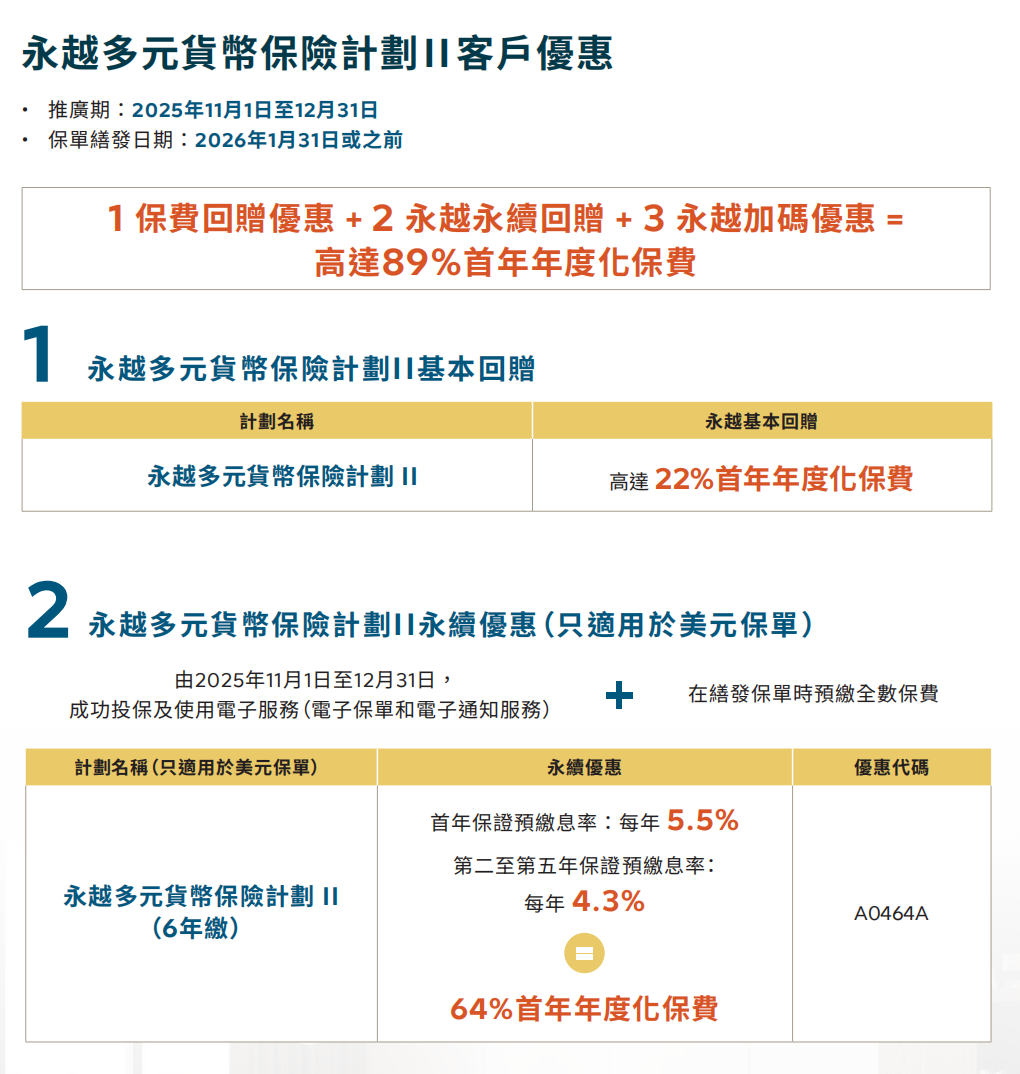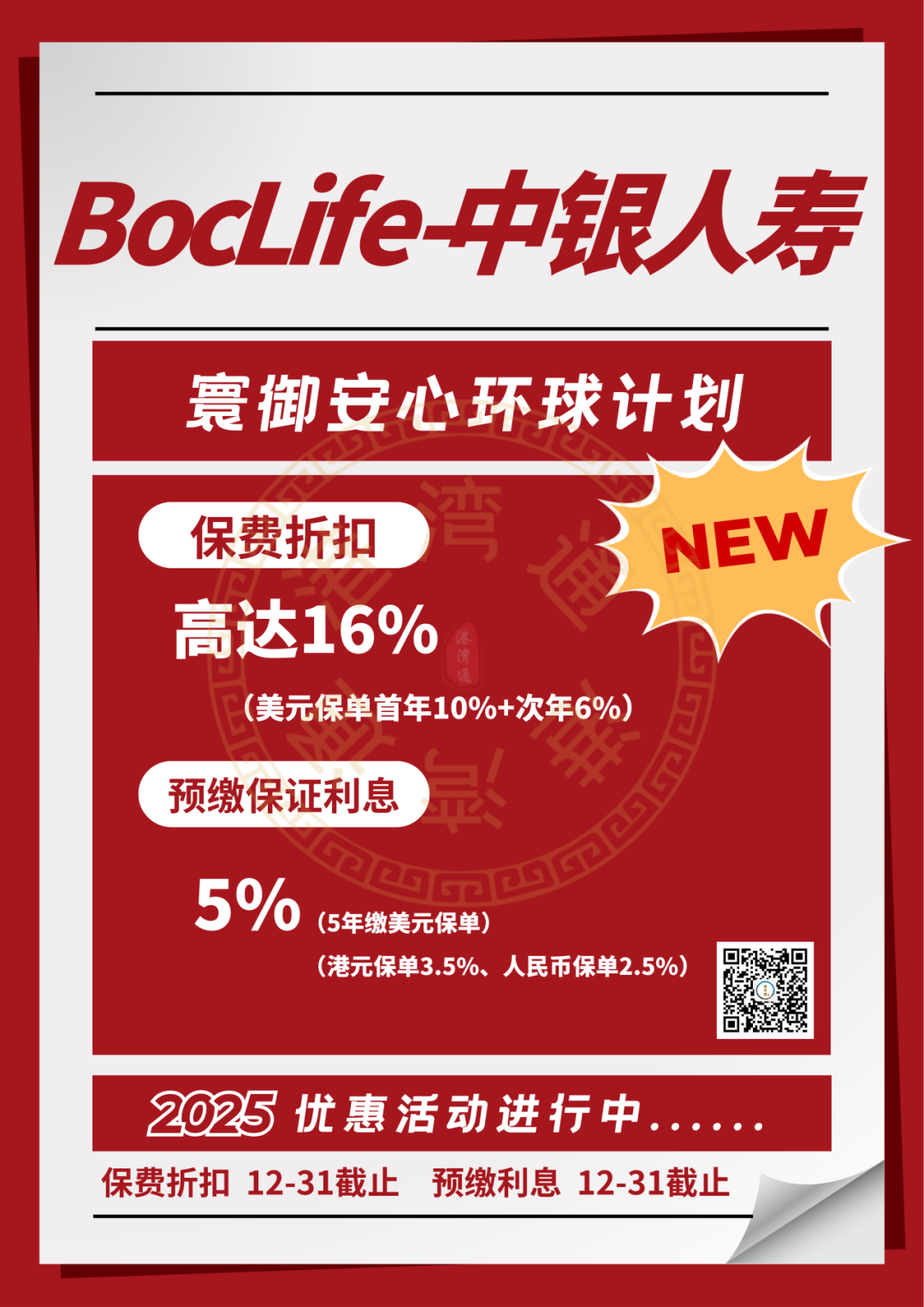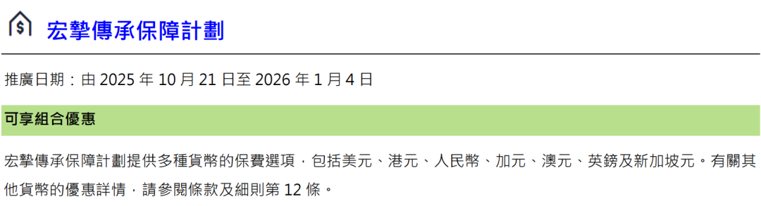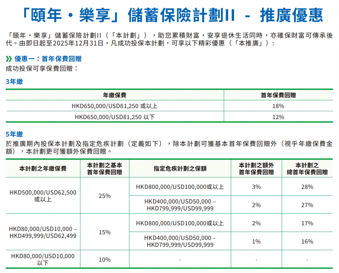 推广期:由2025年12月1日至12月31日(限5年缴美元保单)