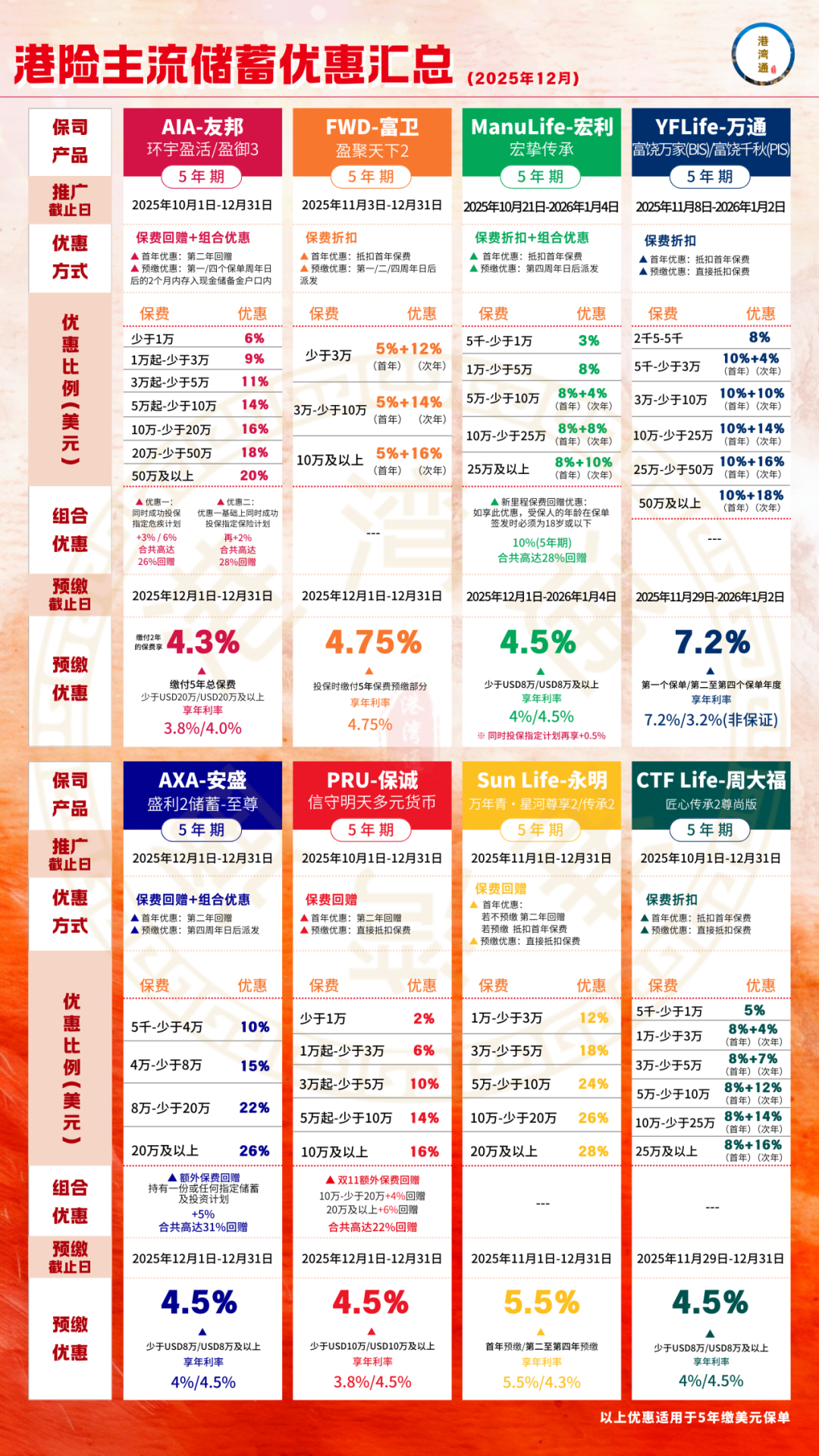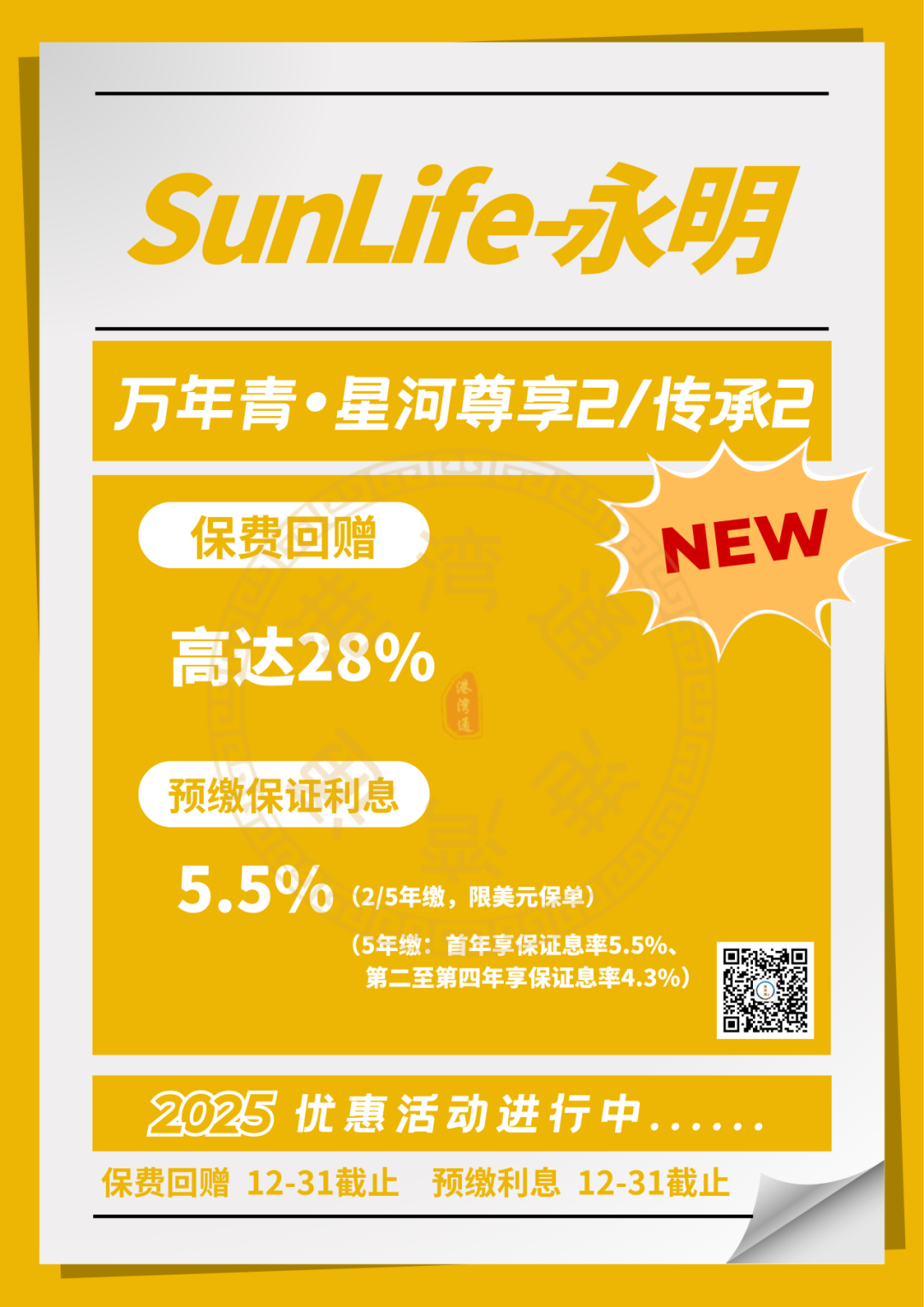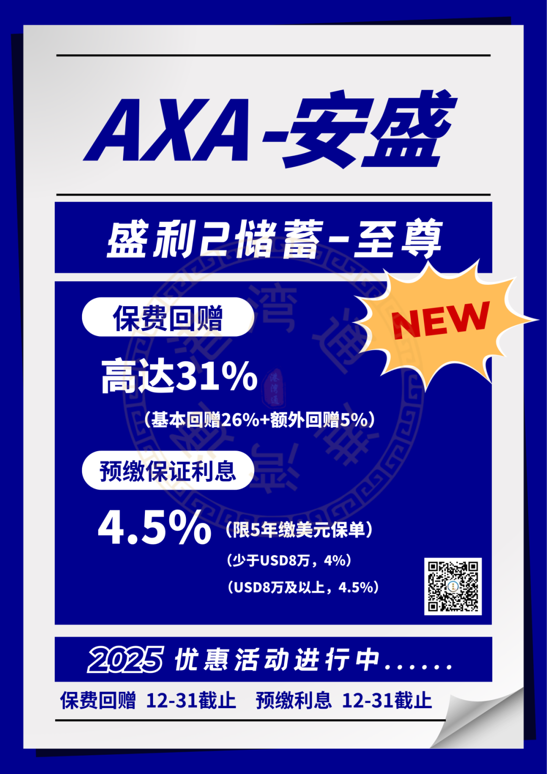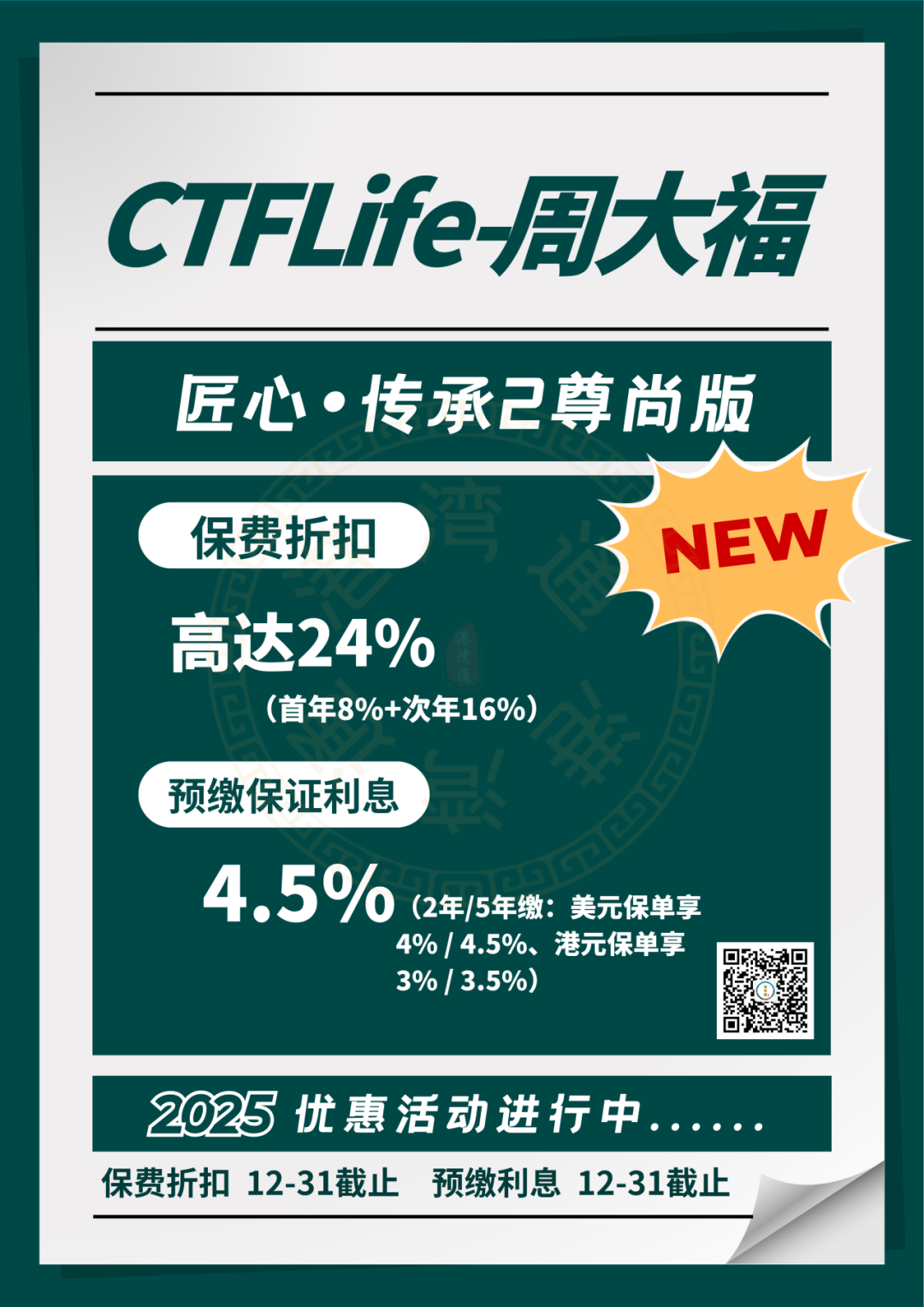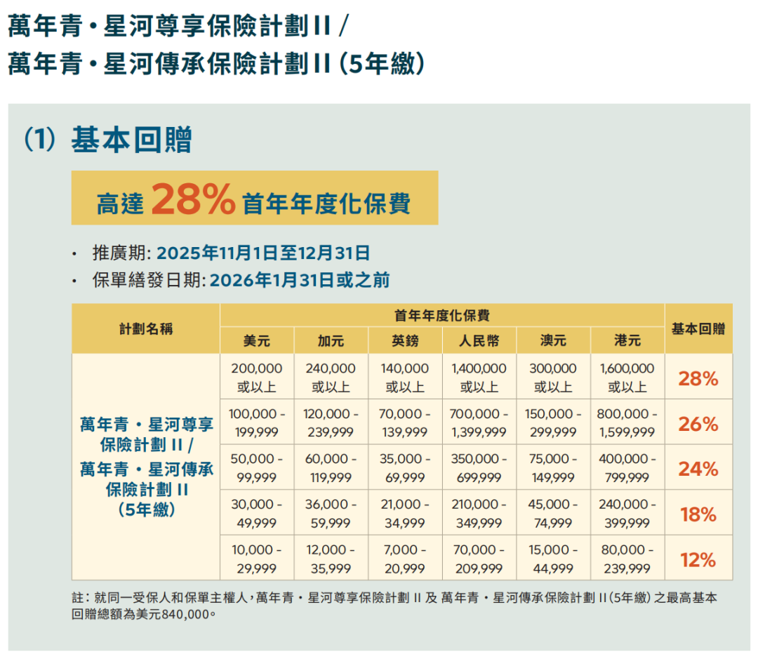 推广期:由2025年12月1日至12月31日(限5年缴美元保单)