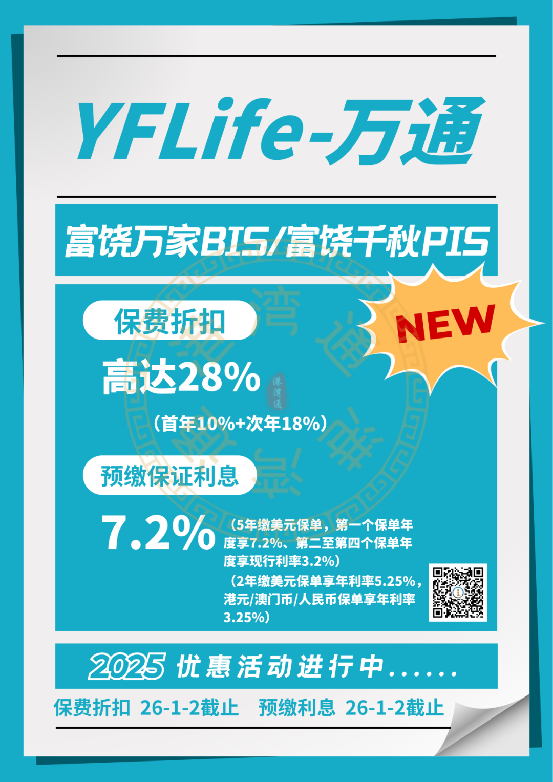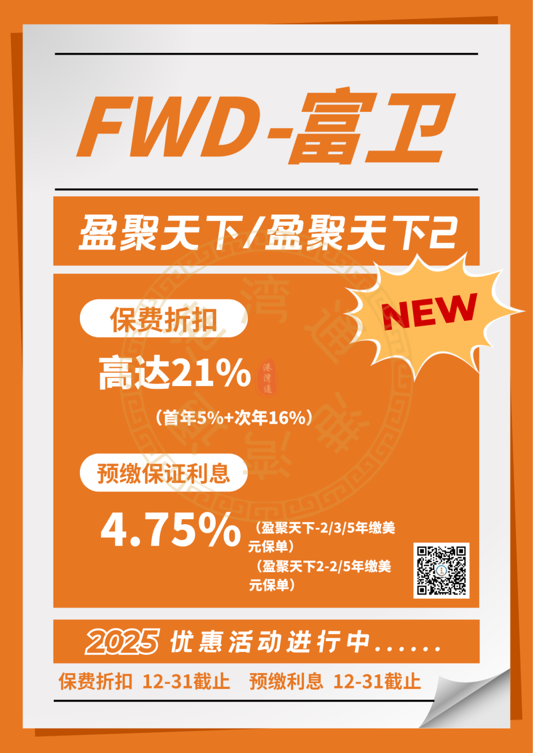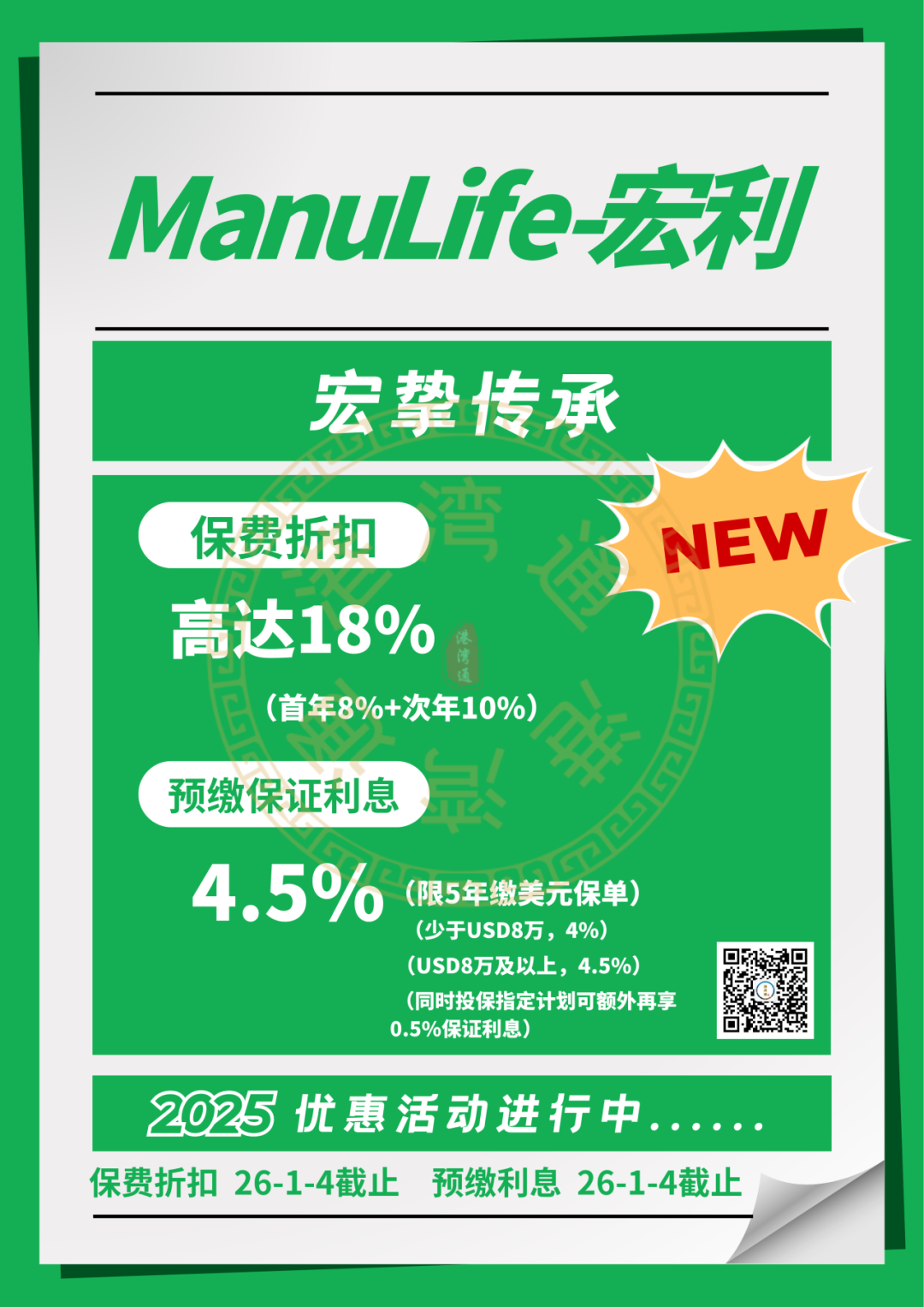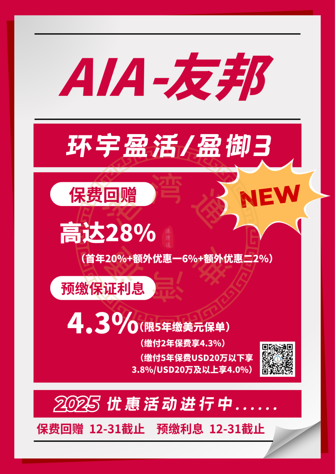 推广期:由2025年12月1日至12月31日(限5年缴美元保单)