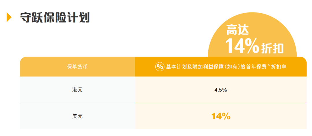美元:首年保费折扣优惠14%