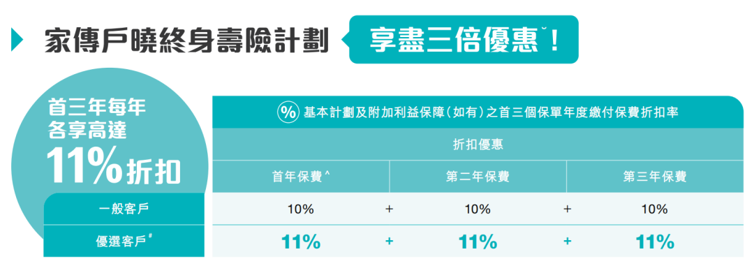 优选客户:首年保费折扣优惠11%(折扣合计高达33%)
