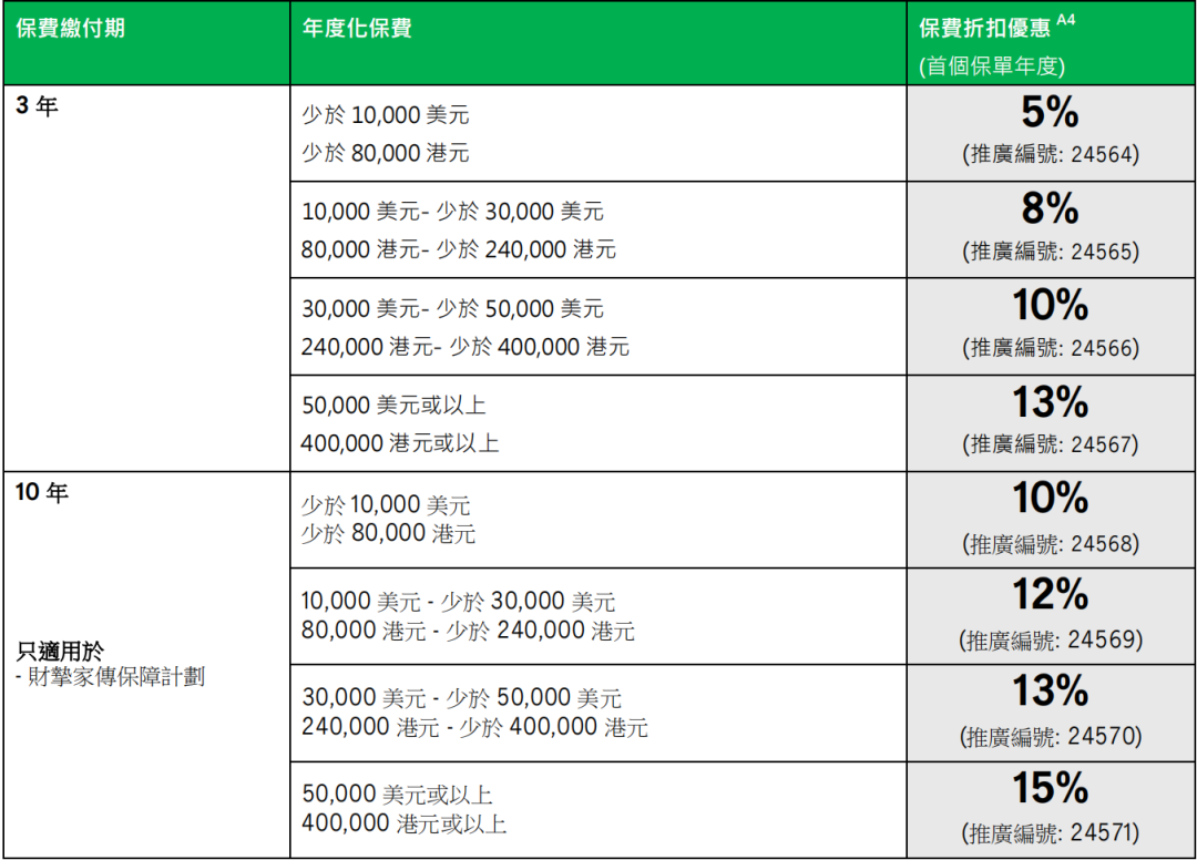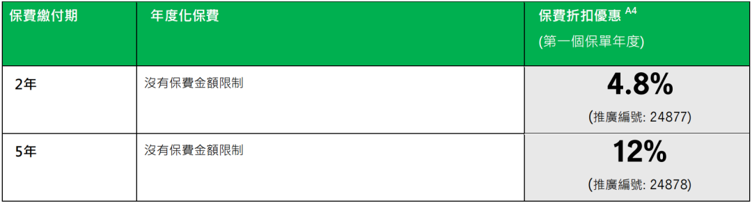 港元:首年保费折扣优惠4.5%