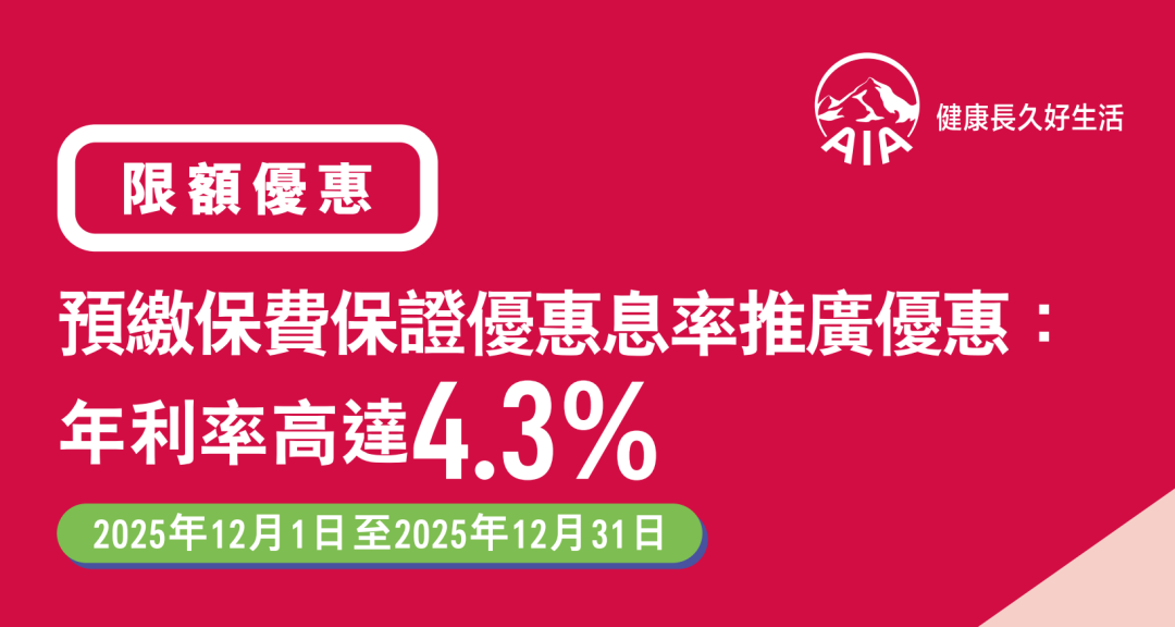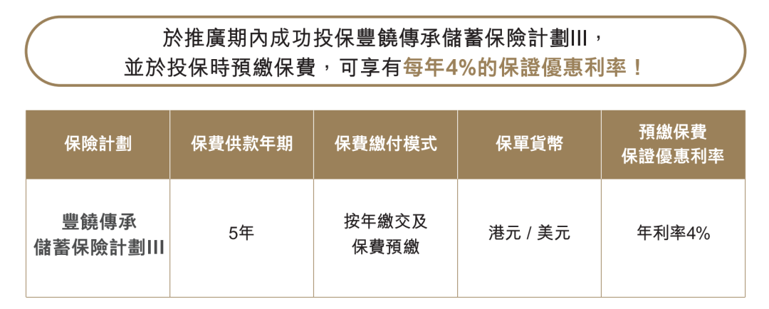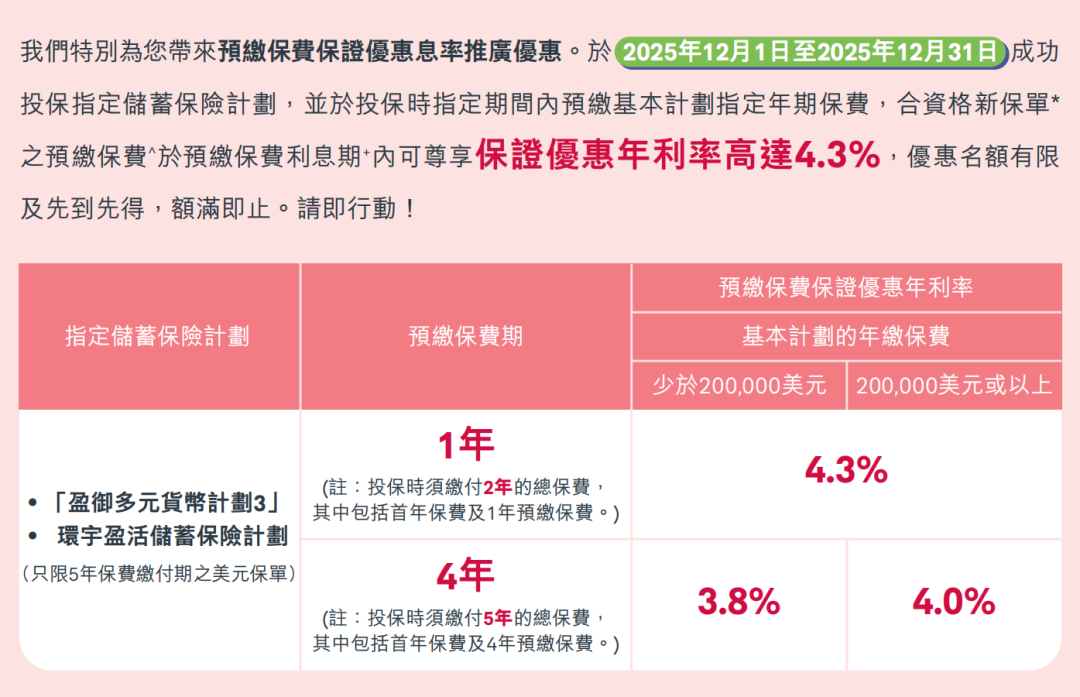 指定储蓄计划提前缴付保费享每年高达 4.3%