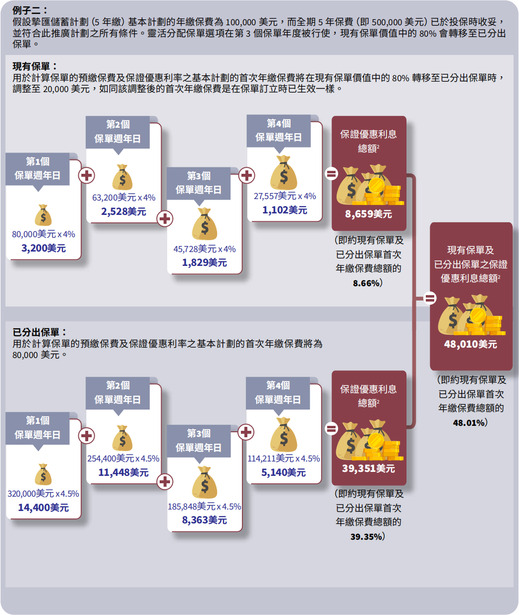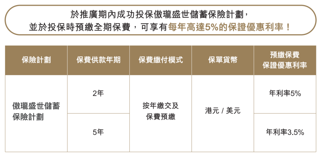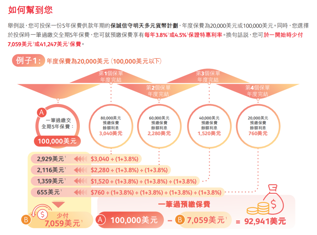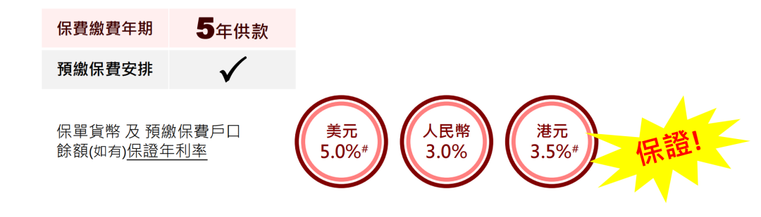 注:限5年期美元保单