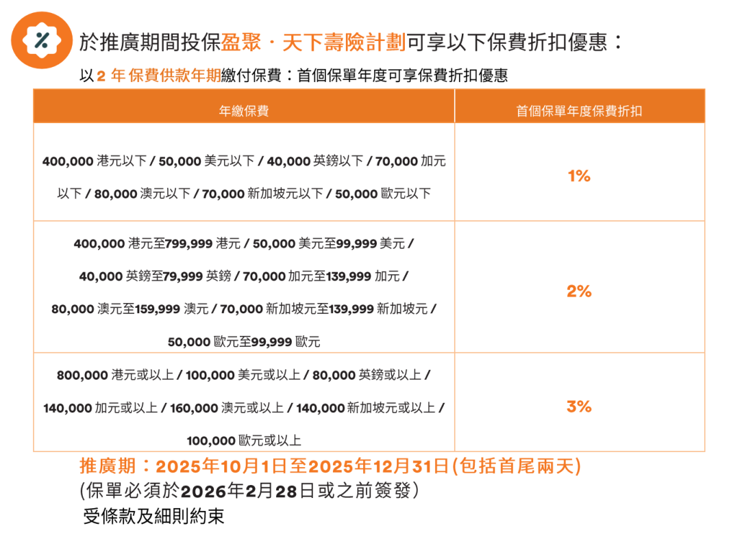 港元货币保费折扣高达 3%