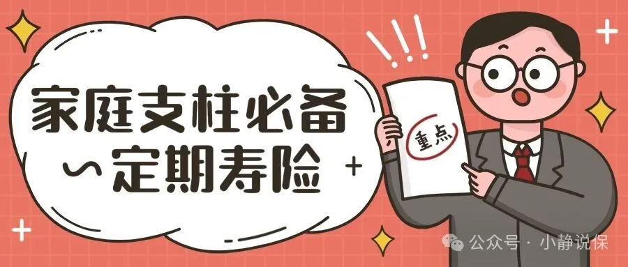 小静之前专门介绍过定寿的挑选方法、赔付细节,想更多了解的朋友可以参考高杠杆、家庭顶梁柱必备的「定期寿险」这样选定期寿险保障责任基本一样,主要保身故/全残,二赔一。我们经常说:“站着是印钞机,倒下是人民币!”每天一杯咖啡钱,守护百万家庭责任。