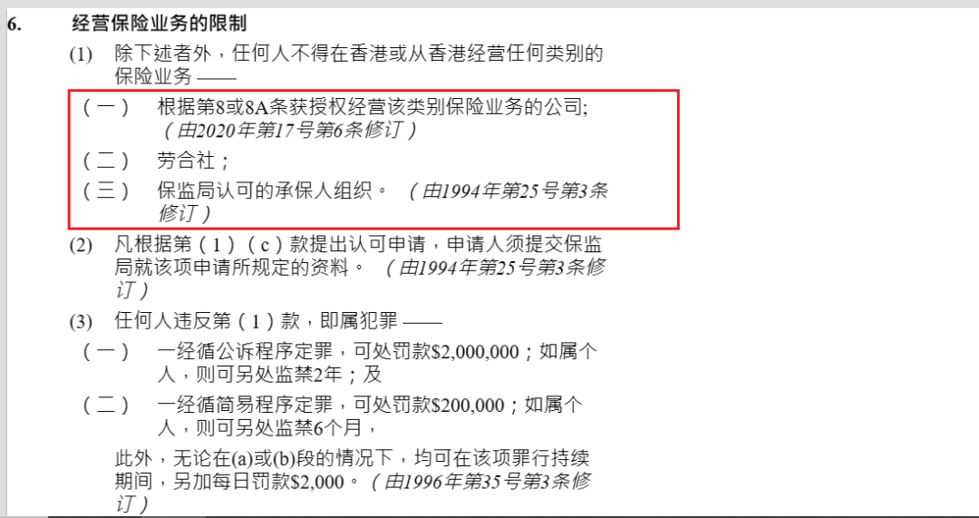 香港的保险公司授权规定