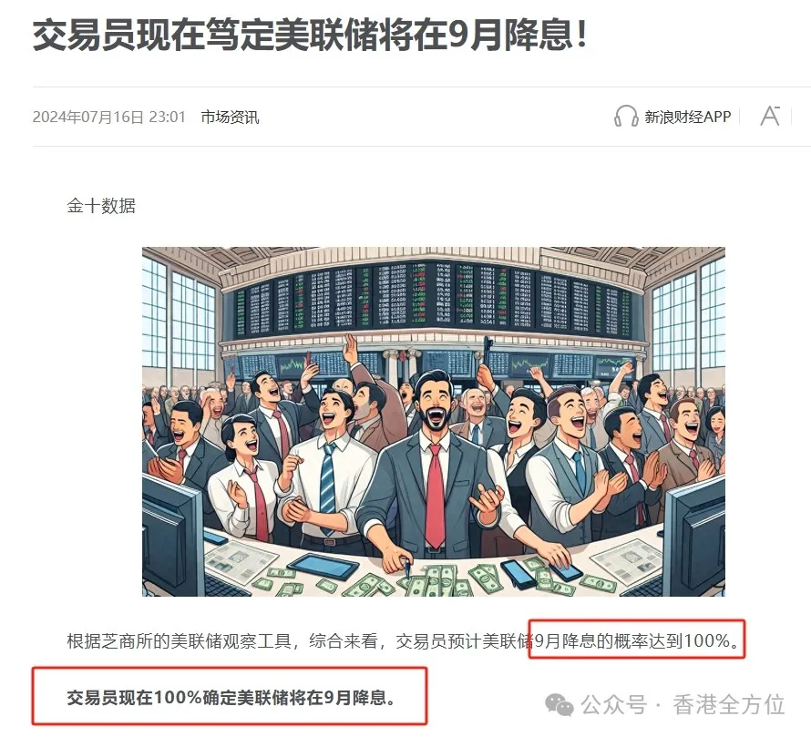 而且在上个月,根据芝商所的美联储观察工具,综合来看,交易员预计美联储9月降息的概率达到100%。