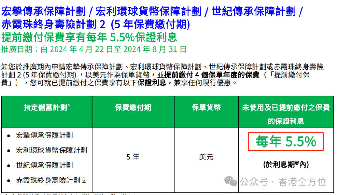 香港保险丨2024年8月最新优惠汇总!保证高达5.5%!