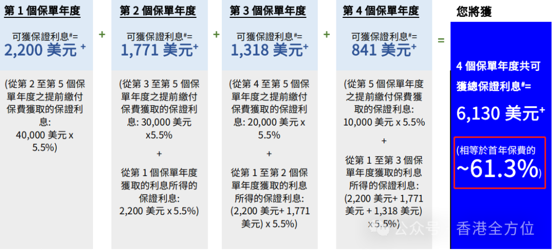 加起来共优惠8.13万美元,相当于首年保费打两折!
