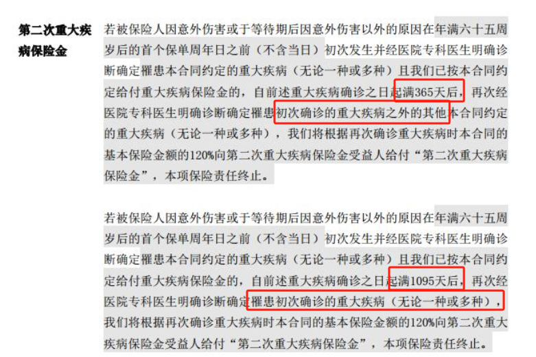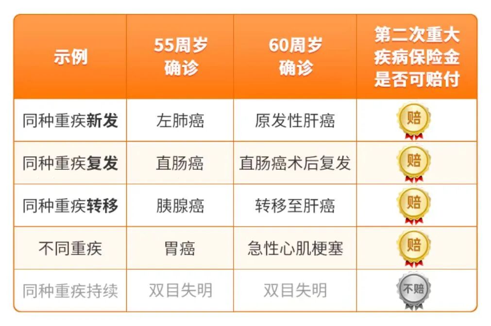 1) 第一次罹患重疾为特定心脑血管疾病,间隔期1年后,再次确诊心脑血管疾病,可以赔付; 2) 第一次罹患重疾,但不是特定心脑血管重疾,间隔期180天后,得了特定心脑血管疾病,可以赔付。