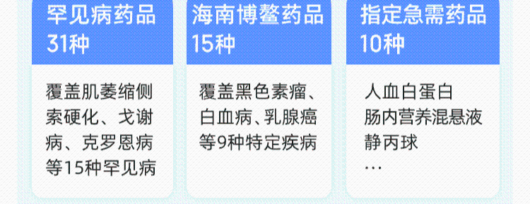 4、270种特药(含6种CART)、31种罕见病药品、特种进口药品30种、指定疾病急需药品10种;