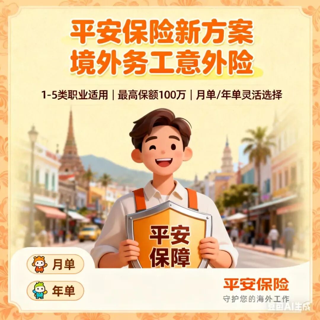 平安境外务工意外险-1-5类职业-最高100万-3人起保
