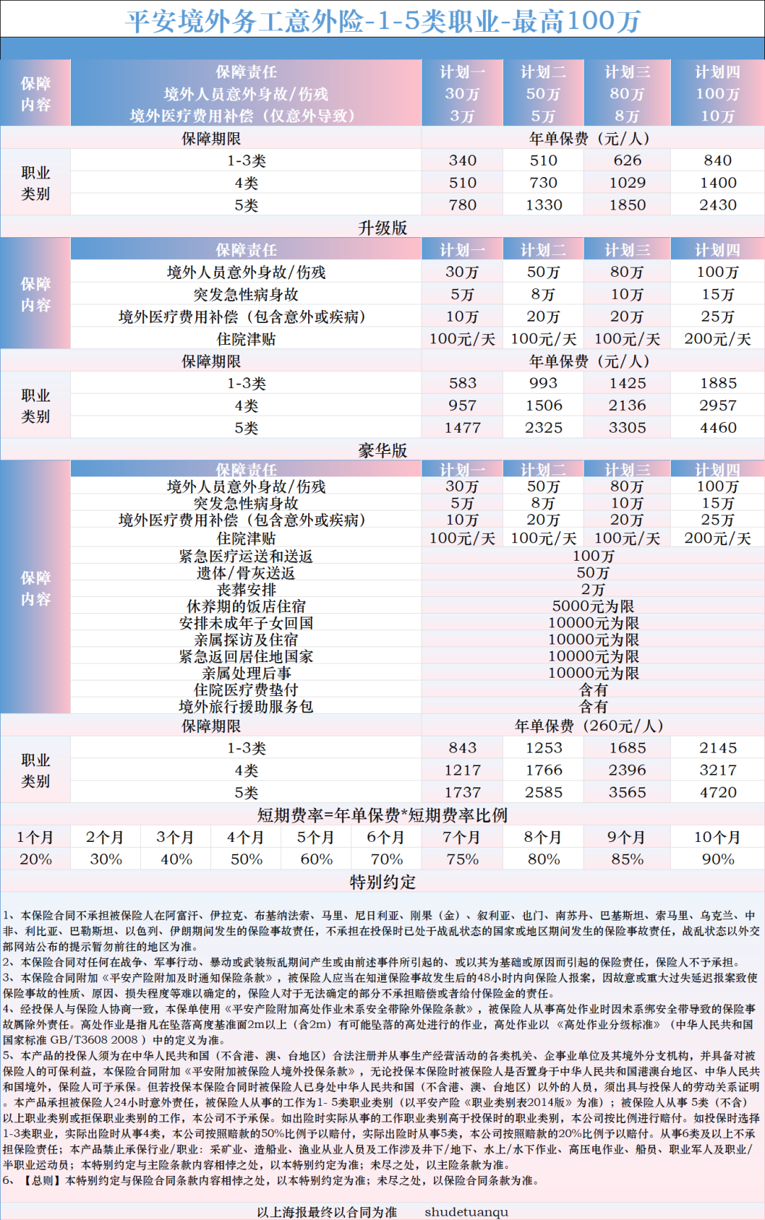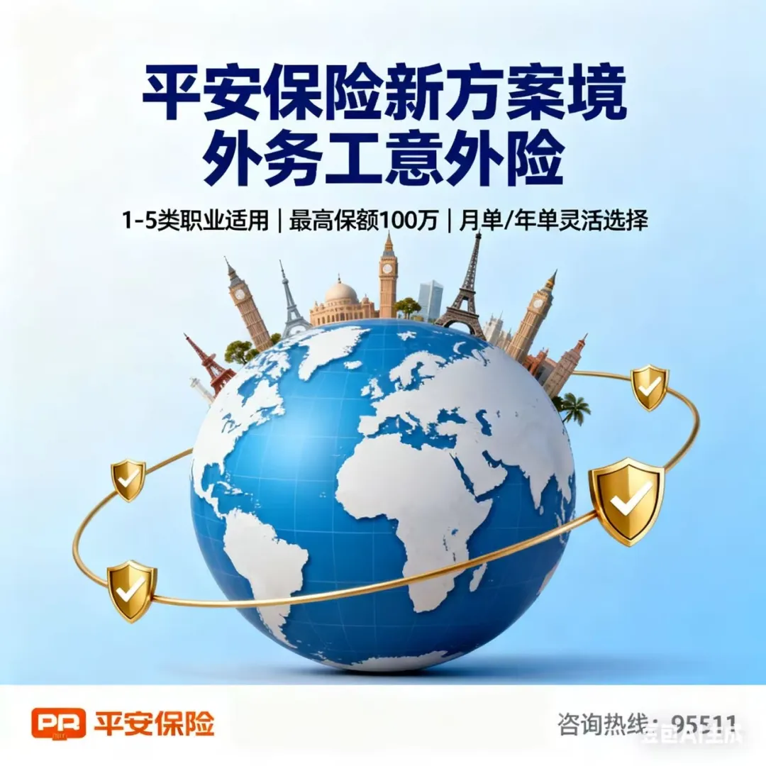 平安保险新方案境外(国外)务工意外险—1-5类---最高100万