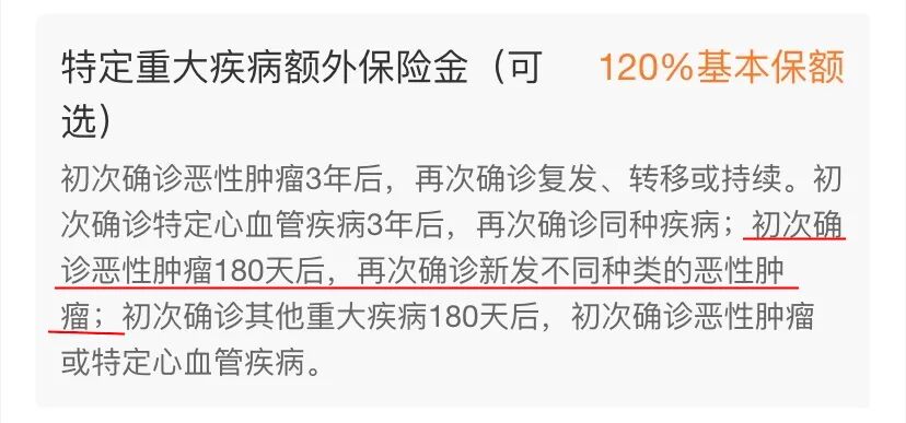 首次重疾为癌症:确诊癌症复发、转移或持续,间隔3年;确诊新发癌症,间隔180天; 首次重疾为特疾:确诊同种疾病,间隔3年; 首次重疾非癌症/特疾,间隔180天。