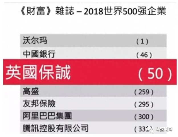 历经大萧条、两次世界大战、冷战、美国科网泡沫破灭、2008年全球金融海啸等重大世界动荡,无论世界如何变化,保诚始终如一的信守承诺。保诚的170年历史中,理赔过多个世界著名保单,如泰坦尼克号的灾难赔偿、一战二战英国士兵家属赔偿、戴安娜王妃的车祸赔偿等。英国保诚在2018年《财富》世界500强排名第50位,在全球拥有超过2,600万名客户,其收入相当于阿里巴巴的3倍,超过阿里巴巴 + 腾讯 + 万科 之和!利润是中国联通的8.4倍,总资产高达6,680亿美金,接近于阿里巴巴 + 腾讯 + 万科之和的2倍,相当于香港外汇储备总额的1.5倍。